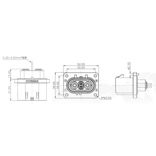 IP67 Waterproof Battery Connector Unshielded 150A 2 Pin Power Socket Images |